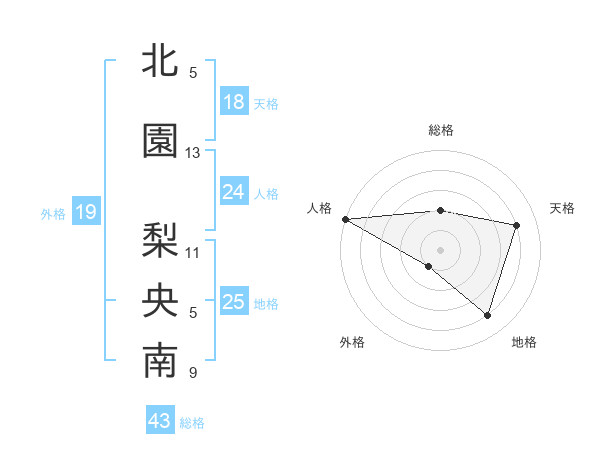 北園 梨央南さんを姓名の画数から五運を鑑定