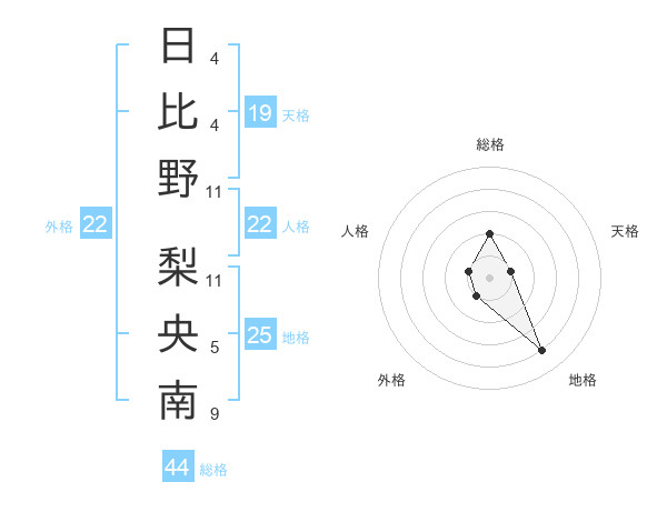 日比野 梨央南さんの総格は44画の2点