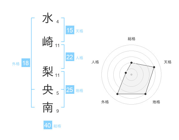 水崎 梨央南さんを姓名の画数から五運を鑑定