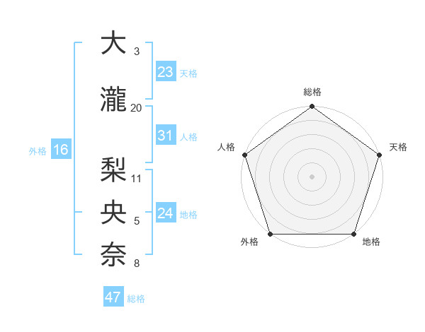 大瀧 梨央奈さんを姓名の画数から五運を鑑定