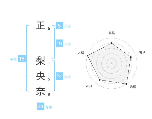 正 梨央奈さんの天格は5画の4点!