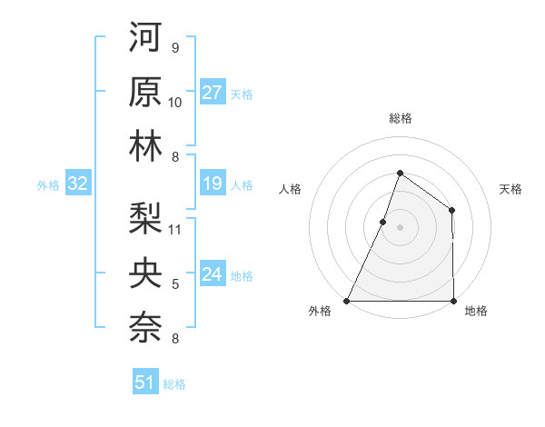 河原林 梨央奈さんを姓名の画数から五運を鑑定