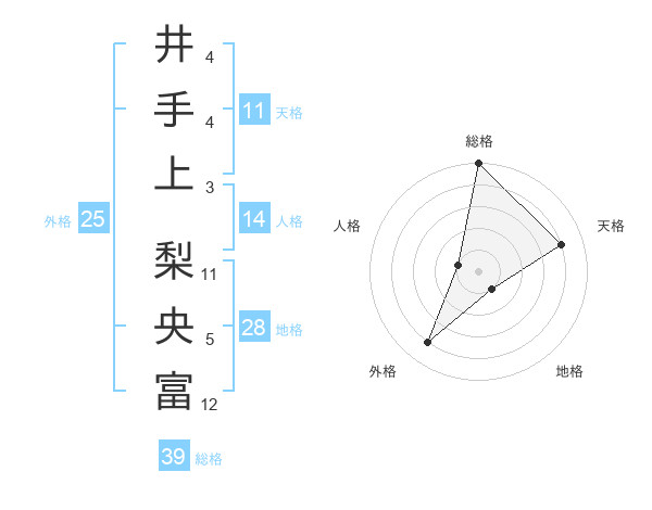 井手上 梨央富さんを姓名の画数から五運を鑑定