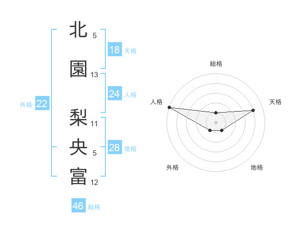北園 梨央富さんを姓名の画数から五運を鑑定