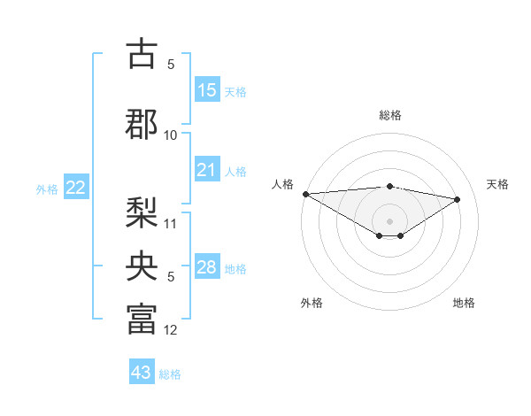 古郡 梨央富さんを姓名の画数から五運を鑑定