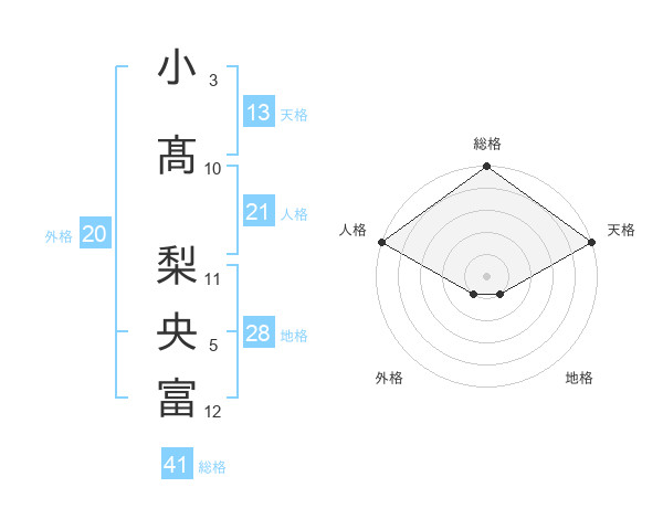 小髙 梨央富さんを姓名の画数から五運を鑑定