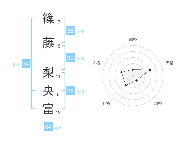 篠藤 梨央富さんの天格は36画の3点!