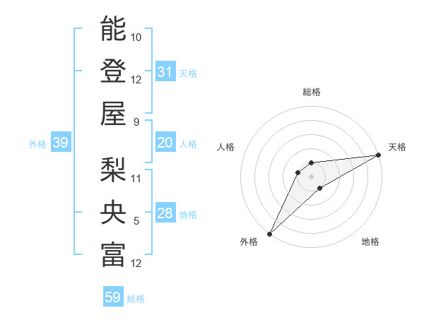 能登屋 梨央富さんを姓名の画数から五運を鑑定