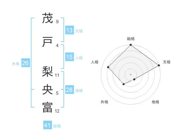 茂戸 梨央富さんを姓名の画数から五運を鑑定