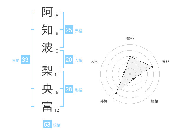 阿知波 梨央富さんを姓名の画数から五運を鑑定