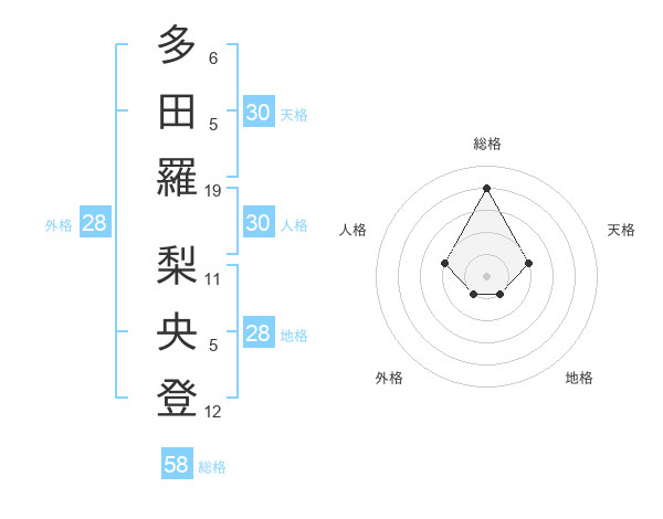 多田羅 梨央登さんを姓名の画数から五運を鑑定
