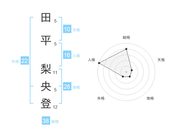 田平 梨央登さんを姓名の画数から五運を鑑定