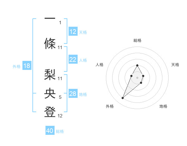 一條 梨央登さんの外格は18画の4点!