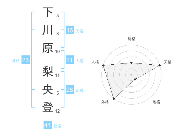 下川原 梨央登さんを姓名の画数から五運を鑑定