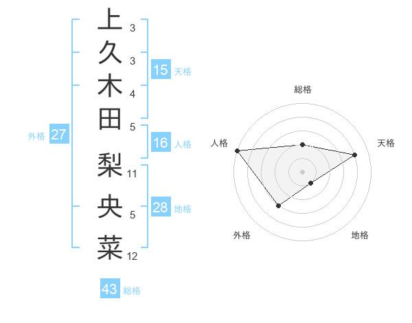 上久木田 梨央菜さんを姓名の画数から五運を鑑定