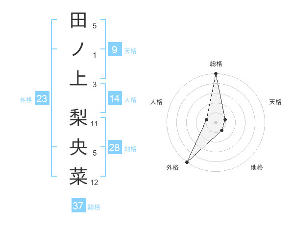 田ノ上 梨央菜さんを姓名の画数から五運を鑑定