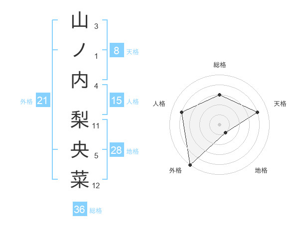 山ノ内 梨央菜さんの天格は8画の4点!