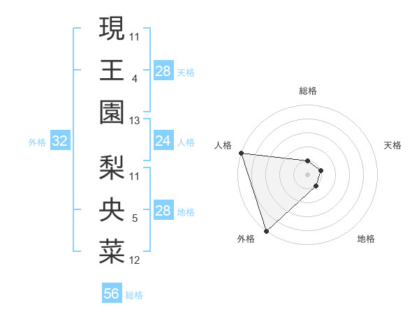 現王園 梨央菜さんの外格は32画の5点