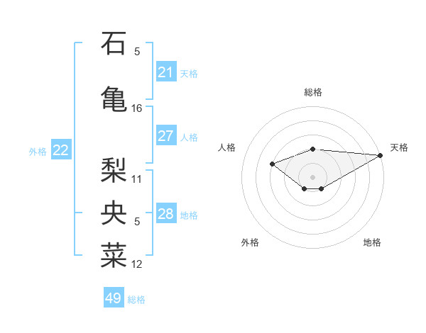 石亀 梨央菜さんを姓名の画数から五運を鑑定