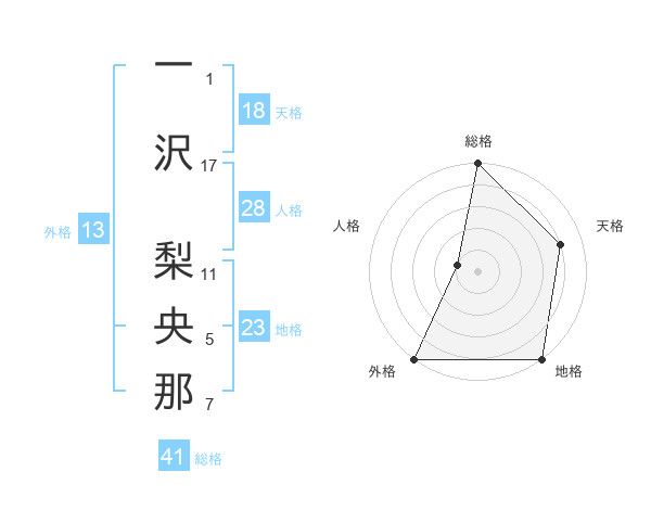 一沢 梨央那さんを姓名の画数から五運を鑑定
