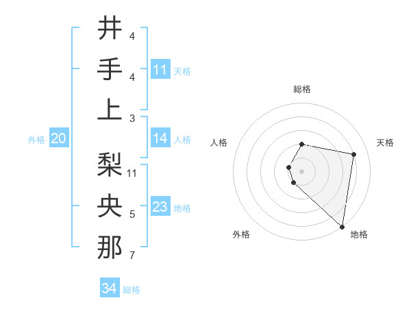 井手上 梨央那さんを姓名の画数から五運を鑑定