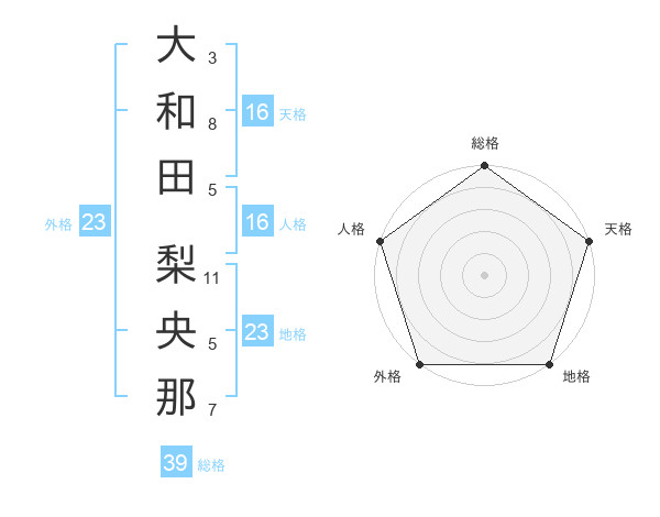 大和田 梨央那さんを姓名の画数から五運を鑑定