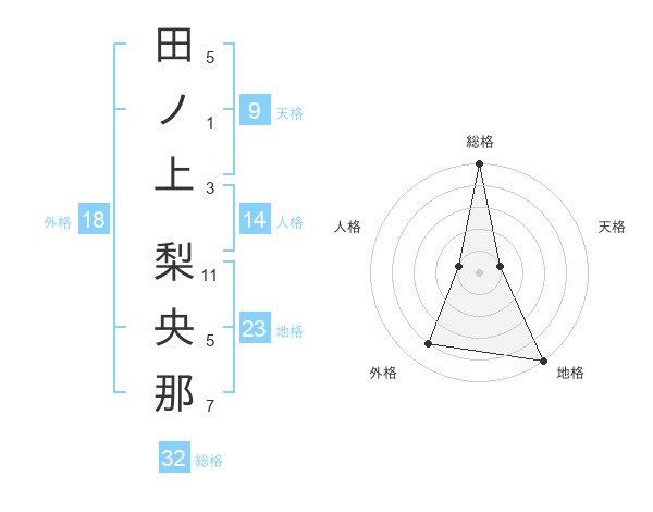 田ノ上 梨央那さんを姓名の画数から五運を鑑定