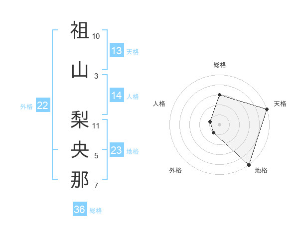 祖山 梨央那さんを姓名の画数から五運を鑑定