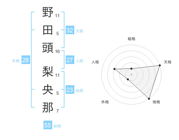 野田頭 梨央那さんの天格は32画の5点!