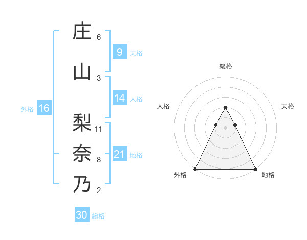 庄山 梨奈乃さんの総格は30画の2点!