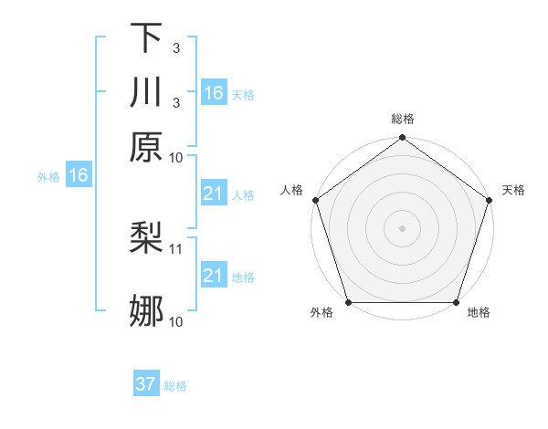 下川原 梨娜さんを姓名の画数から五運を鑑定