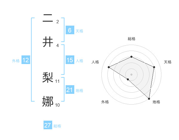二井 梨娜さんの総格は27画の3点!