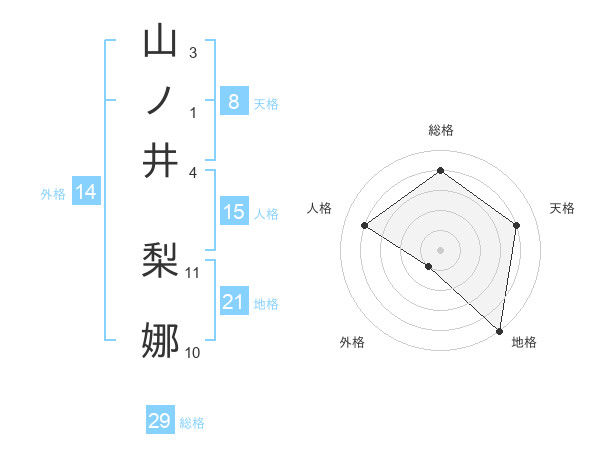 山ノ井 梨娜さんを姓名の画数から五運を鑑定