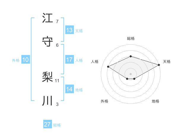 江守 梨川さんの天格は13画の5点!