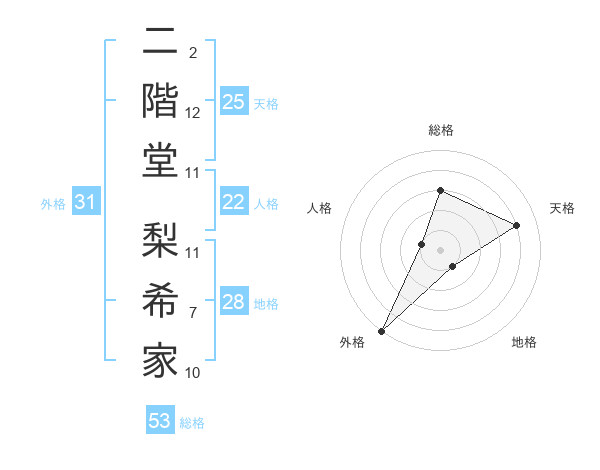 二階堂 梨希家さんの総格は53画の3点