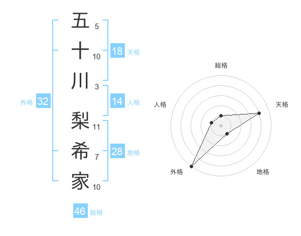 五十川 梨希家さんの外格は32画の5点!