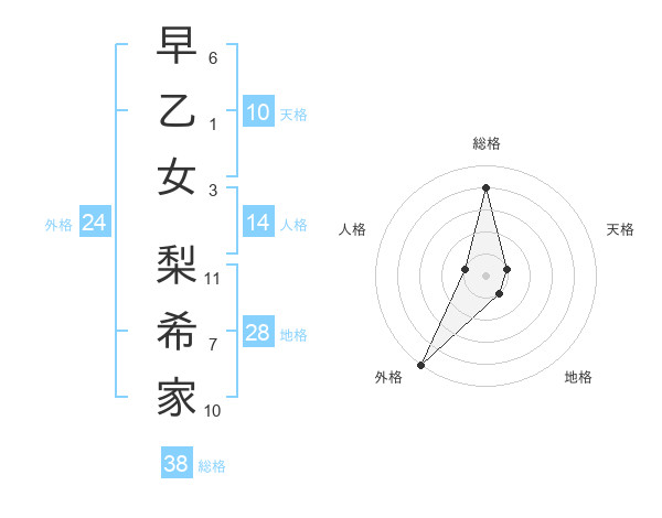 早乙女 梨希家さんを姓名の画数から五運を鑑定