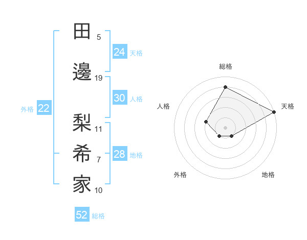 田邊 梨希家さんを姓名の画数から五運を鑑定