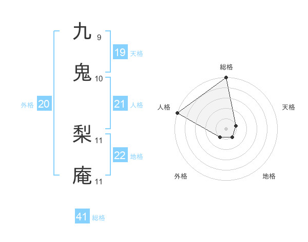 九鬼 梨庵さんの総格は41画の5点!