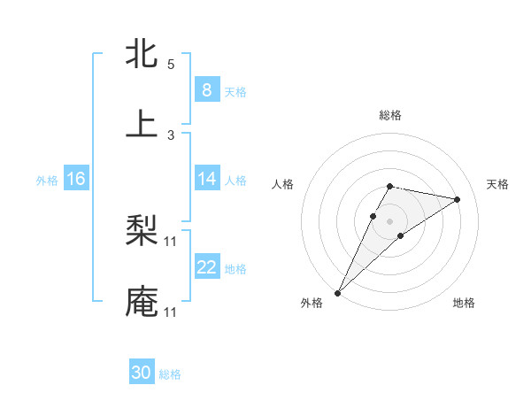 北上 梨庵さんの総格は30画の2点!