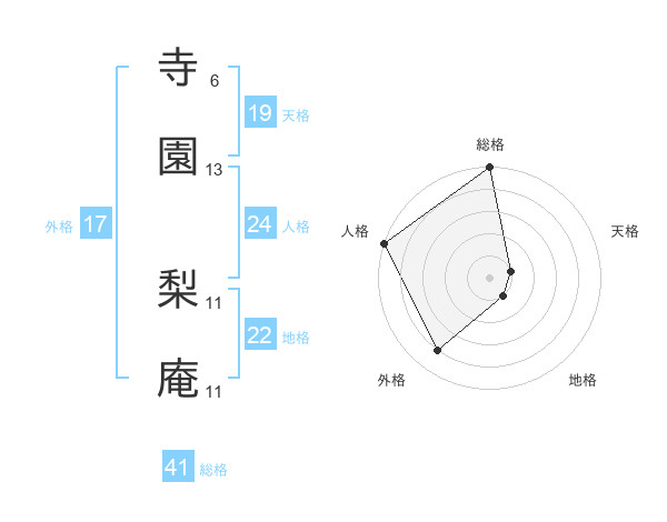 寺園 梨庵さんを姓名の画数から五運を鑑定