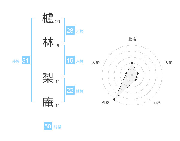 櫨林 梨庵さんを姓名の画数から五運を鑑定