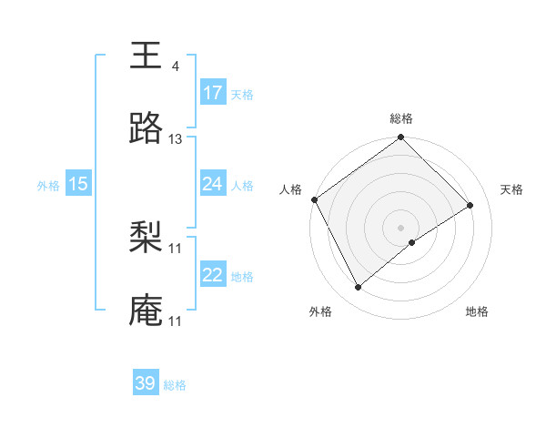 王路 梨庵さんを姓名の画数から五運を鑑定