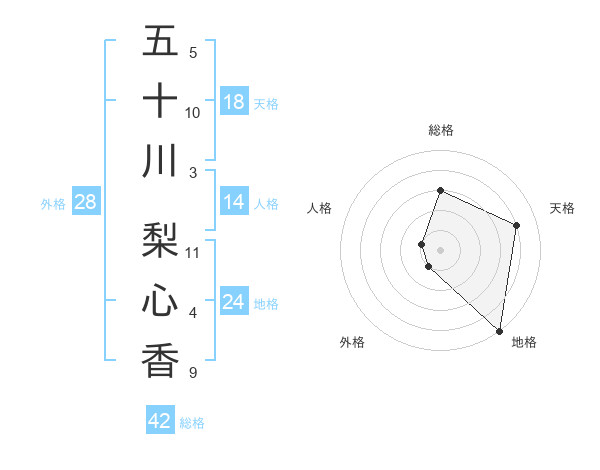 五十川 梨心香さんを姓名の画数から五運を鑑定