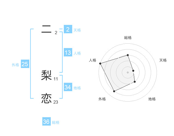 二 梨恋さんの総格は36画の3点!