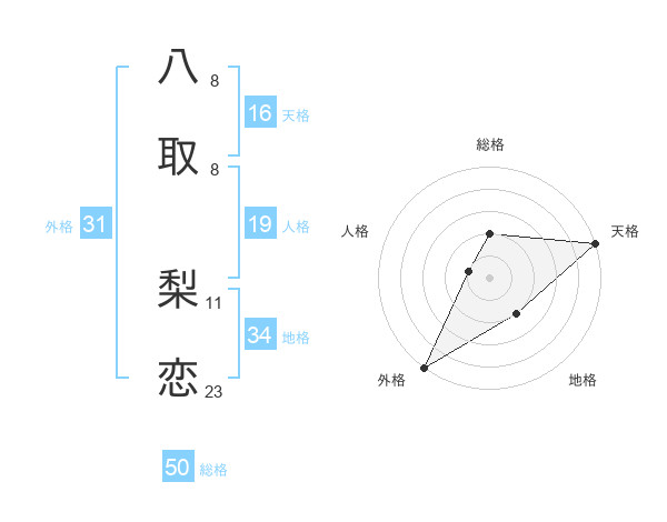 八取 梨恋さんを姓名の画数から五運を鑑定