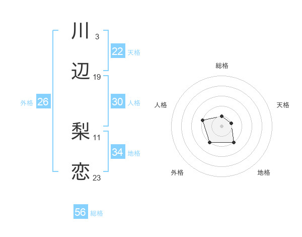 川辺 梨恋さんの総格は56画の1点!