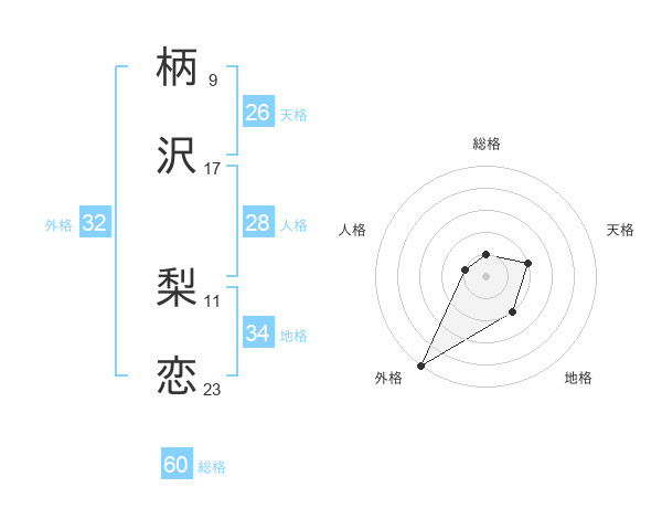 柄沢 梨恋さんの総格は60画の1点!