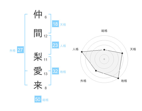 仲間 梨愛来さんを姓名の画数から五運を鑑定