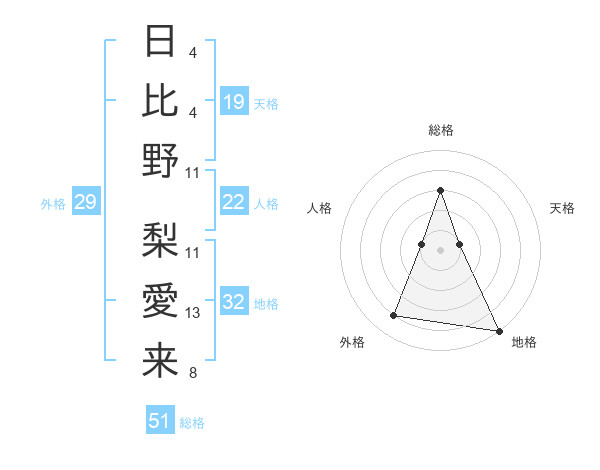 日比野 梨愛来さんを姓名の画数から五運を鑑定